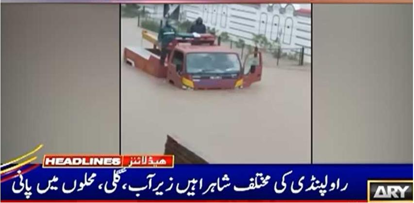 Twin cities of Islamabad and Rawalpindi and adjoining areas received heavy rainfall as Rawalpindi lashed by record 220 millimeters down pour, ARY News reported on Thursday.