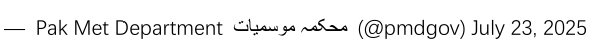July 23, 2025#PMD #WeatherAlert #heavyrainwatch #PakistanWeather #StormPreparedness #monsoon2025 #RainAlert #StaySafeStayPrepared pic.twitter.com/HXa7KIrMo9