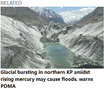 A glacial burst, or glacial lake outburst flood (Glof), refers to an outburst of water from a glacial lake which could lead to severe flooding downstream. Pakistan is home to over 13,032 glaciers, the largest reservoir of glaciers outside of the polar regions. However, experts have warned that about 10,000 glaciers in Chitral and GB have been reported to be receding due to climate change–induced temperature rise.