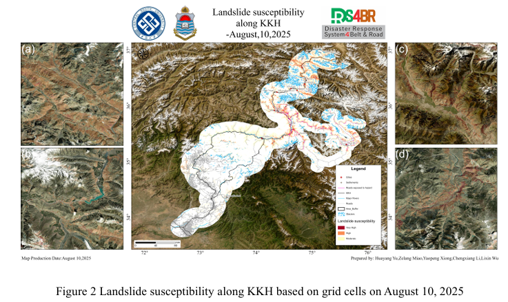 Afurther susceptibility analysis was conducted on the GilGit-Skardu route. Due to the large area of the high-susceptibility zone on the section from Gilgit to Skardu, the affected highway section is also relatively long, with a total length of 172.06 kilometers. Near Skardu, due to the steep terrain and concentrated cumulative rainfall, the risk of landslides has significantly increased, and enhanced monitoring and preventive measures are needed.